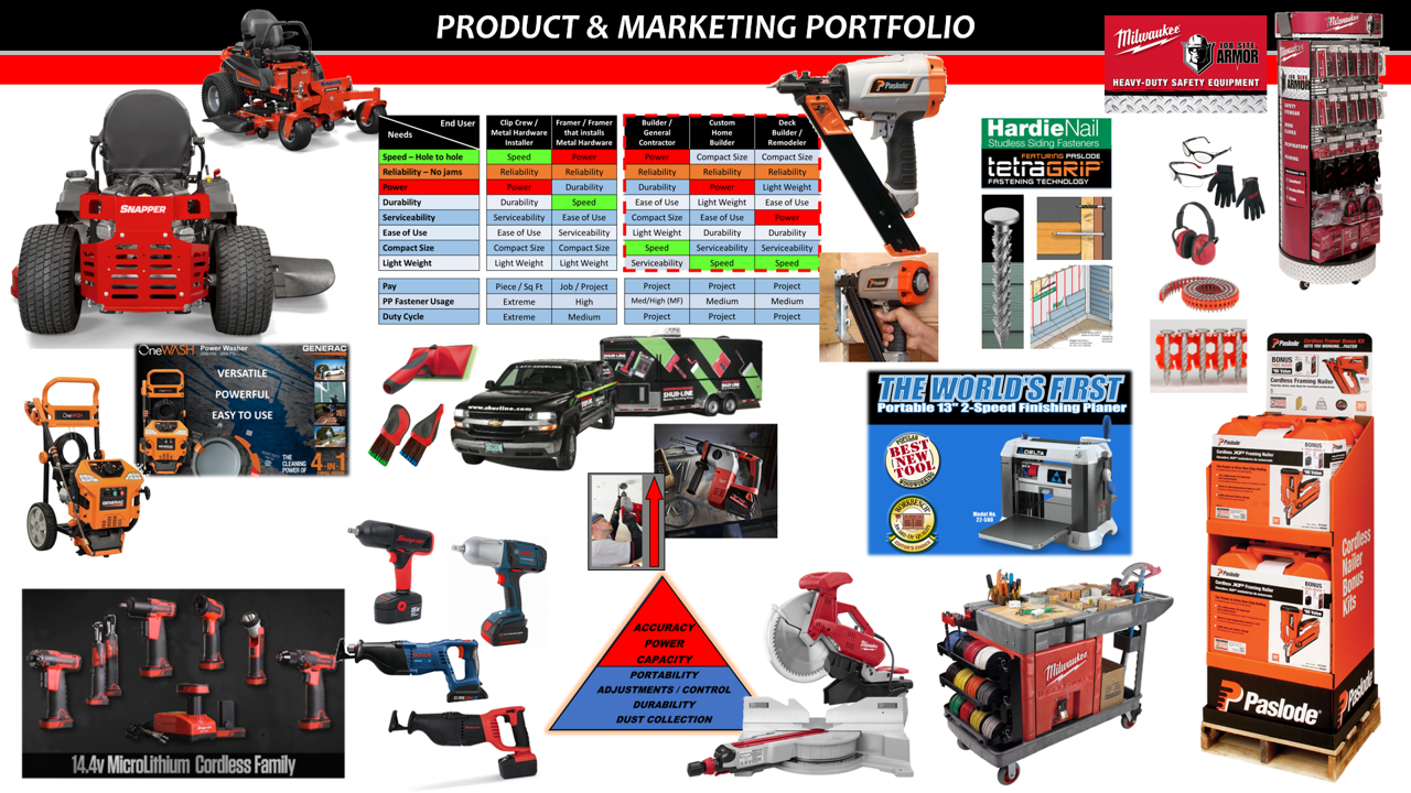 - STAFDA - Collaborated with Sales to drive $2.5M in Paslode business through compelling channel marketing programs.